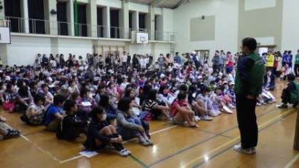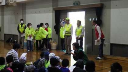 今年もたくさんの子どもたちが参加しています。ラリーをする時の注意などを聞いた後,子どもたちが地域へ出発しました。