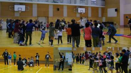北総合支援学校で,上京支部育成学級の「みんなよろしく大会」が開催されました。最初に学校紹介があり,二条城北小学校は,オリジナルソング「給食の歌」を元気よく歌い,お友達紹介をしました。後半は,みんなでゲームをして楽しい時間を過ごすことができました。