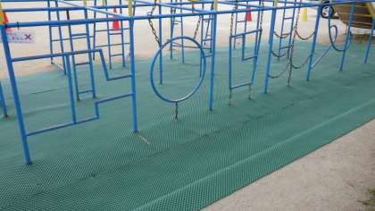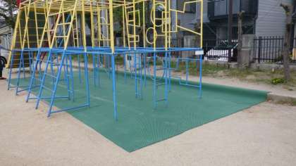 午前中に,総合遊具のマットを張り替えました。