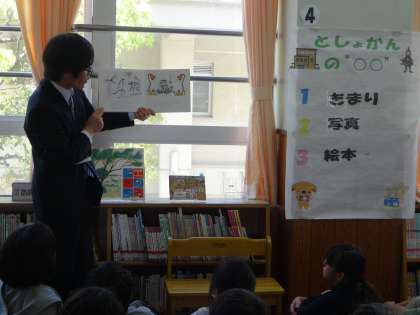 オリエンテーションでは,図書の並び方や貸出・返却の仕方,図書館でのマナーを学びます。