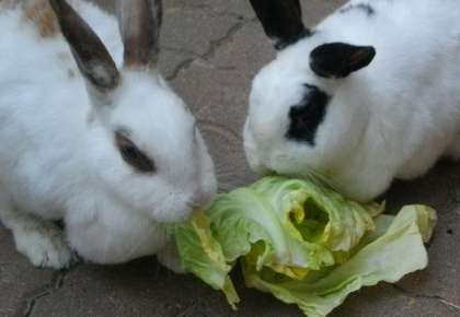 キャベツをもりもり食べています。最近,1枚のキャベツを両端から同時に食べている様子をよく見ます…。