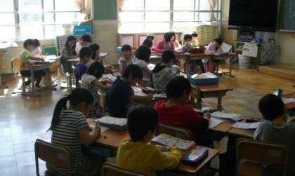4年生は,朝の会で図書の係が学級文庫の紹介をしていました。3年生・2年生は,朝の会の前後に漢字の練習をしていました。