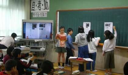 6年生は,「顔」を見つめながら,画用紙にていねいに描いていきます。5年生は国語で新聞記事を使いながら学習を進めています。