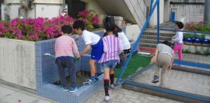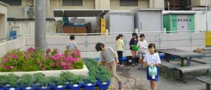 登校後,運動場で遊んだり花壇で水をまいたりしています。穏やかな朝のスタートを迎えることができました。