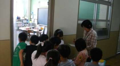 校長室や事務室,職員室など,各部屋の前にある説明を読んでたんけんをしていきます。