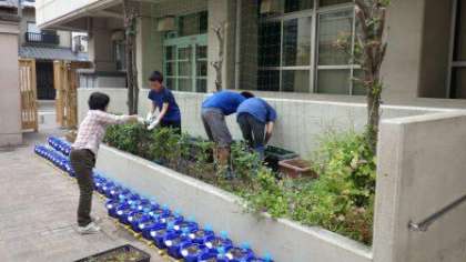 園芸委員会は緑のカーテンの苗植えなどをしています。環境委員会は節水などをよびかけるポスターを作っています。放送委員会は,担当ごとに放送内容を考えています。
