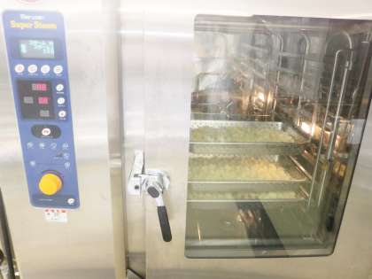 今日は,手亡豆のクリームシチューのじゃがいもとひじきのソテーの人参をスチームコンベクションオーブンで蒸してから調理しました。