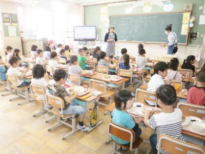 「わたしはひじきのソテーがにがてだけど,とてもおいしかったです。つぎにおいしかったのはてぼうまめのクリームシチューです。」(2年児童)