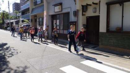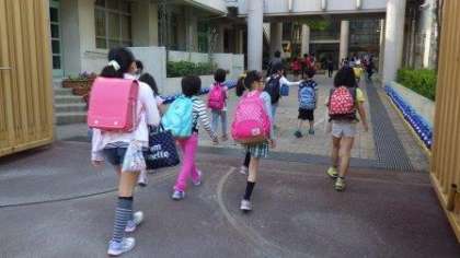 今日は,遠足に行く学年はリュックサックで登校しています。
