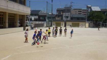 今日は修学旅行と遠足のため,学校には4・5年生しかいません。いつもより運動場がさびしい感じがしますが,4・5年生の子どもたちは広い運動場を思い切り使ってうれしそうです。おにごっこやドッジボールなどをして遊んでいます。