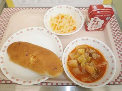 「じゃがいものソテーがしゃきしゃきしていておしいかったです。ミートボールとキャベツのトマト煮が味が濃くておいしかったです。」(5年児童)