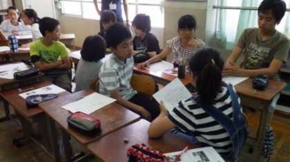 今日は,「世界一大きな授業」で世界の教育の現状をクイズで知ったり,より良い世界にするために活動している子ども達の話を聞いた感想をグループで交流したりしました。