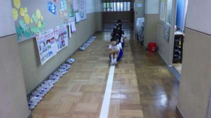 今日は1年生が心電図をとって検査しています。保健室前の廊下で,静かに並んで順番を待つことができていました。