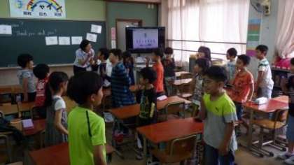映像教材を使ったり,英語の歌を歌ったりしています。