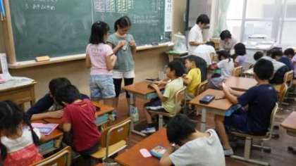 今年度1回目の「にじょっこ活動」を行いました。全学年の児童がたてわりの班で活動します。遊びや読み聞かせなど,みんなで楽しく活動してほしいと思います。