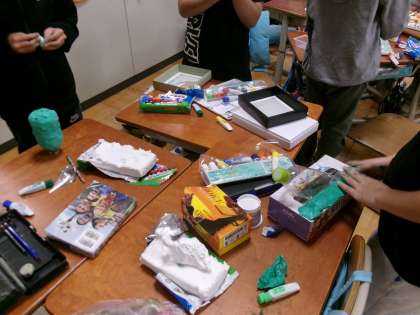 組み立て方が決まったら、紙粘土を使って作品を作っていきます。