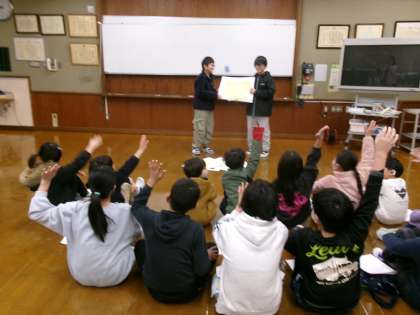 まずは、5年生から、山の家の学習をもとに、「山の家クイズ」!