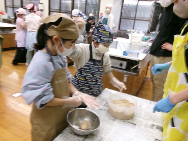 大豆をつぶして小さなお団子にして、最後は保存する入れ物に投げ入れます。