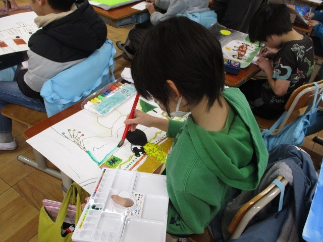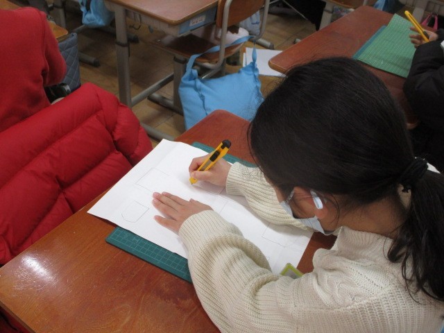 図工では、カッターナイフを使って作品を制作しています。先週は使い方をしっかりと確認した後、練習を行いました。今日は実際にカラー工作用紙を切り始めました。クラスによっては、引き続き「こんなこと あったよ」に取り組んでいる学級もありますが、作品展に向けて順次取り組んでいく予定です。
