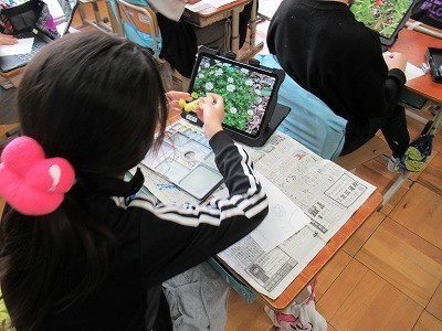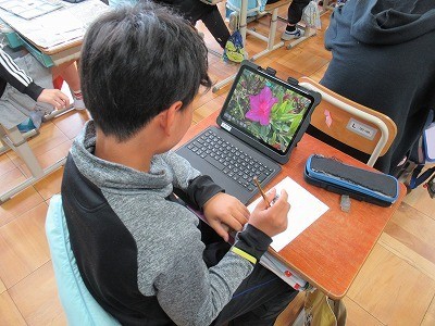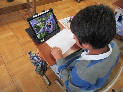 学校で見つけた植物を自分の表したい表現を使い絵の具でスケッチをしました。