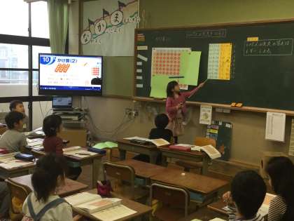 2年生の算数では,かけ算の学習に入っています。各クラスでは,九九を唱える声が響いてきています。