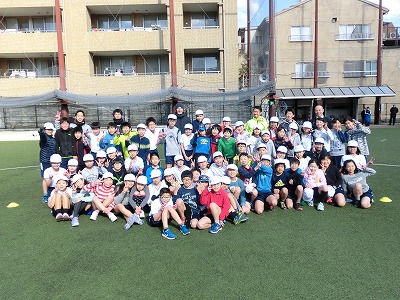 2月4日(日),御所南コミュニティ野外活動スポーツ部会の取組で毎月行っている陸上教室を行いました。今回はスーパーアドバイザーとして陸上選手の朝原宣治さんに来ていただき,いろいろな動きの練習を進めていただきました。