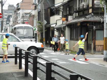 実際に柳馬場通りを歩く学習では,自転車や車の通る数がとても多かったのですが,安全ベストを着ている子ども達はよく目立っていました。今日は,改めて道路での安全な歩行・横断歩道のわたり方を学びなおすことができました。