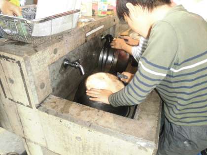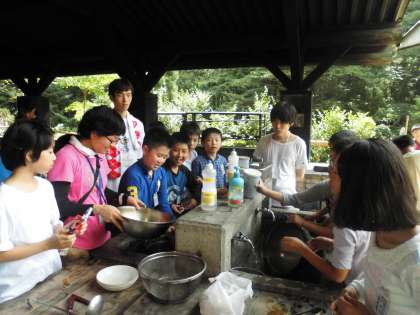 おいしくいただいた後は、後片付けです。次に使う学校が気持ちよく使えるように、きれいにして返さなければなりません。山の家の所員の方のOKがもらえるまで、何度もやり直しです。次の人のことを考えてしっかり洗って、磨いてくれていました。