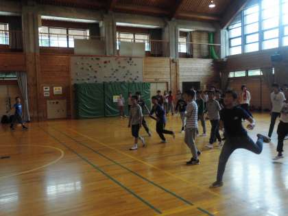 野外炊事のあとは、ディスクゴルフと火起こし体験です。午前中とグループが入替わり行いました。3時30分ごろから通り雨が降り出したのでフライングディスクは急きょ中止し、プレーホールでクラス対抗のドッジビーをしました。ボランティアできてくれいる学生のお兄さん、お姉さんにもはいってもらい、大変盛り上がりました。