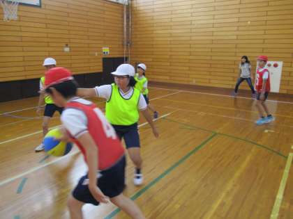 まだ学習が始まったばかりですが「ルールに慣れ,チームの様子を知りながら,相手チームに挑戦して楽しむ」というめあてをもちながら意欲的に学習を進めています。