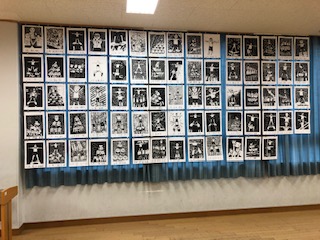 1月15日は6年生の自由参観日です。それに合わせて作品展も行っています。6年生は、木版画の展示を行いました。細かなところまで彫刻刀で彫り、黒と白のバランスを考え制作した作品が展示されています。6年生の作品展は17日まで行っています。