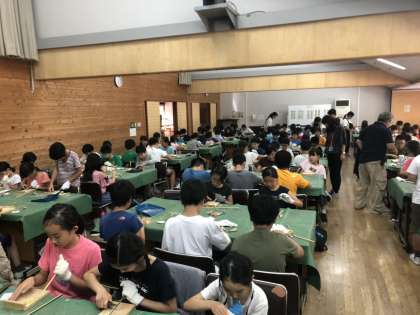 小刀を使いながら,慎重に削っていきます。少し硬いので,悪戦苦闘しています。