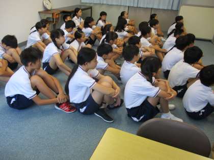 また計測前には養護の先生から,「学校でのけが」についてお話がありました。どうすればどんなけがにつながるのか,どうすれば防ぐことができるのか,子どもたちは真剣に考えていました。