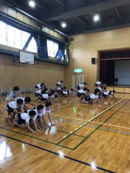 技のコツをつかみ,全体で決めることが出来るようになってきました。いよいよ,大技の練習に入っていきますが,クラス,学年の雰囲気が日に日に良くなっています。