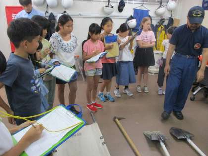 地域の消防団で活動をされている方から,消防団と消防士との違いや,消防団の活動内容,消防団に参加されている方々の思いなどをきいて学びました。また実際に消防団の詰所の中の設備を見学させていただきました。子どもたちは「消防団と消防士はどのように協力をしているのか」という学習課題をもって体験や見学をしていました。