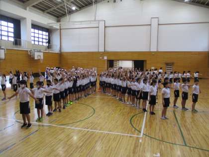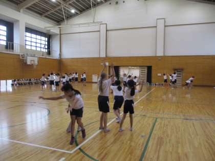 9日(金)には体育館で表現の学習をしました。「体全体を使って」「息を合わせて」等,完成度を上げるために頑張っています。