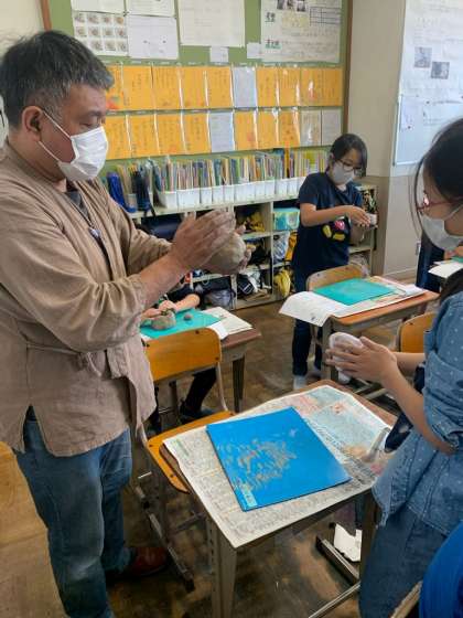 総合的な学習の時間コミュニティかがやきで,5年生の「匠のつたえ」の単元がスタートしました。「伝統工芸のよさってなんだろう」という課題をもって,清水焼の手び練りに挑戦しました。「思っていたより難しい。」「一生懸命 集中しないとうまくいかないな。」「形ができてくるとうれしい。」など感じながら体験をしていました。これからさまざまなことを通して「よさ」を見つけていくようです。出来上がるまでの時間も,大切な時間ですね。