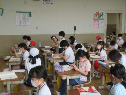 国語の学習で,「きつつきの商売」という物語文を使って勉強しています。文章から様子を想像して,音読に表したり,続きの場面を考えてお話を書いたりしました。
