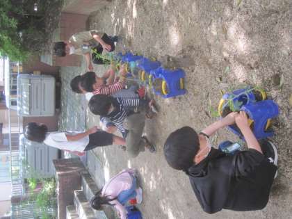 今年は生活科の学習で、一人一鉢ミニトマトの栽培にチャレンジします。昨日の生活科の時間に、それぞれの植木鉢にミニトマトの苗を植えました。今日の朝登校してくると、「早く大きくなってほしいな。」と嬉しそうに水やりをしている子どもたちの姿がありました。