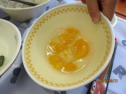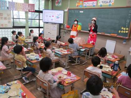 配られた時はさらさらしているのに、給食を食べている間に自然に固まっていくまほうのデザートです。