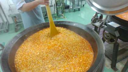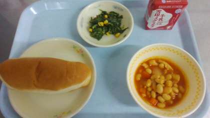 給食では、乾物の大豆を朝から水に戻してじっくりと煮ます。