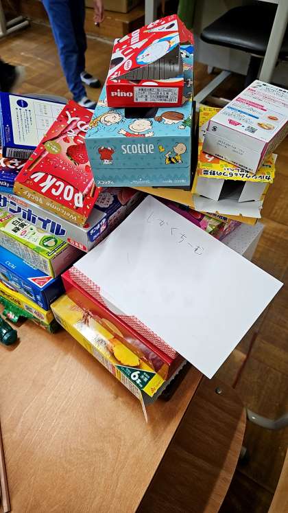 保護者の皆様、空き箱の収集にご協力いただきありがとうございました。