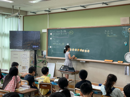 わり算の筆算につながる考え方なので、みんなで話し合いながら「なるほど!」「10円にしたら分かりやすい」など納得しながら考えを進めていました。