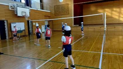 4組と5組は、体育の時間にソフトバレーボールに取り組んでいます。初めは、サーブが入らなかったりラリーが繋がらなかったりと、なかなかソフトバレーボールの楽しさを味わえずにいた子どもたちでした。学習を進める中で、「ワンバウンドOK」「サーブじゃなく下から投げ入れてもOK」など、自分たちで「ソフトバレーボールを楽しむためのルール」を考えることで今では毎時間、とても白熱した試合をすることができるようになりました。