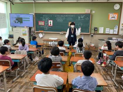 栄養教諭の野秋先生とお米についての「食の学習」をしました。(4・5組は今週行います。)