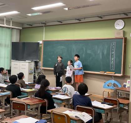 国語科の学習「聞き取りメモのくふう」では、先生たちに聞いてきたことをみんなに発表しました。先生たちが小学校の時に夢中になっていたことを共有し、「え!知らなかった!」「私と同じだ」と楽しくメモの交流ができました。
