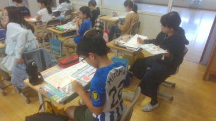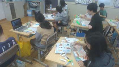 先日より取り組み始めている図画工作科「わたしの大切な風景」では.各クラス完成に向けてどんどん活動が進んでいます。撮影した写真を見ながらどの色を使えば上手に表現できるかを考えて、一生懸命彩色する姿がたくさん見られています。