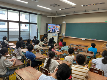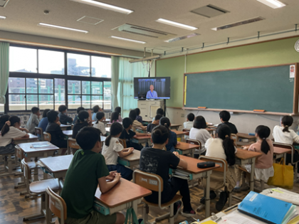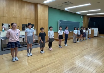 見守り隊の方に来ていただき、5年生の子どもたちが代表として子ども安全宣言を行いました。