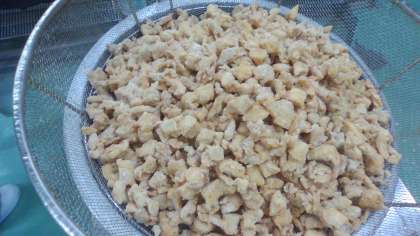 鶏肉に衣をつけてあげてから、ケチャップの甘辛いソースをからめて作ります。