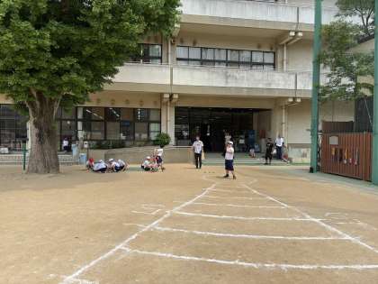 新体力テストでソフトボール投げをしました。 友だちの様子を見ながら、順番に投げていました。
